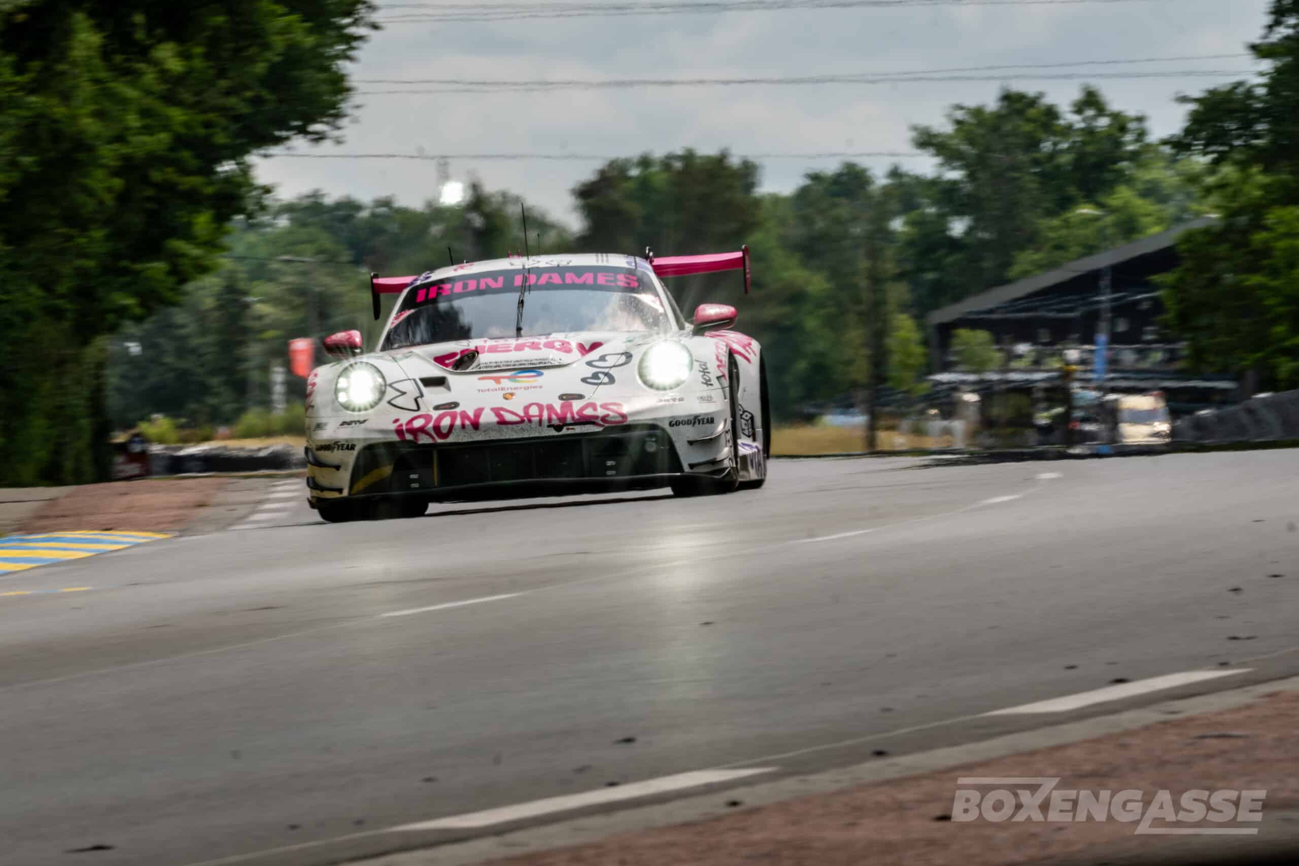Mens danskeren må se resten af årets 24-timers klassiker fra sidelinjen med foden pakket ind, bliver det i stedet belgiske Sarah Bovy, der teamet op med Rahel Frey og Celia Martin i den lyserøde og hvide Porsche #85.