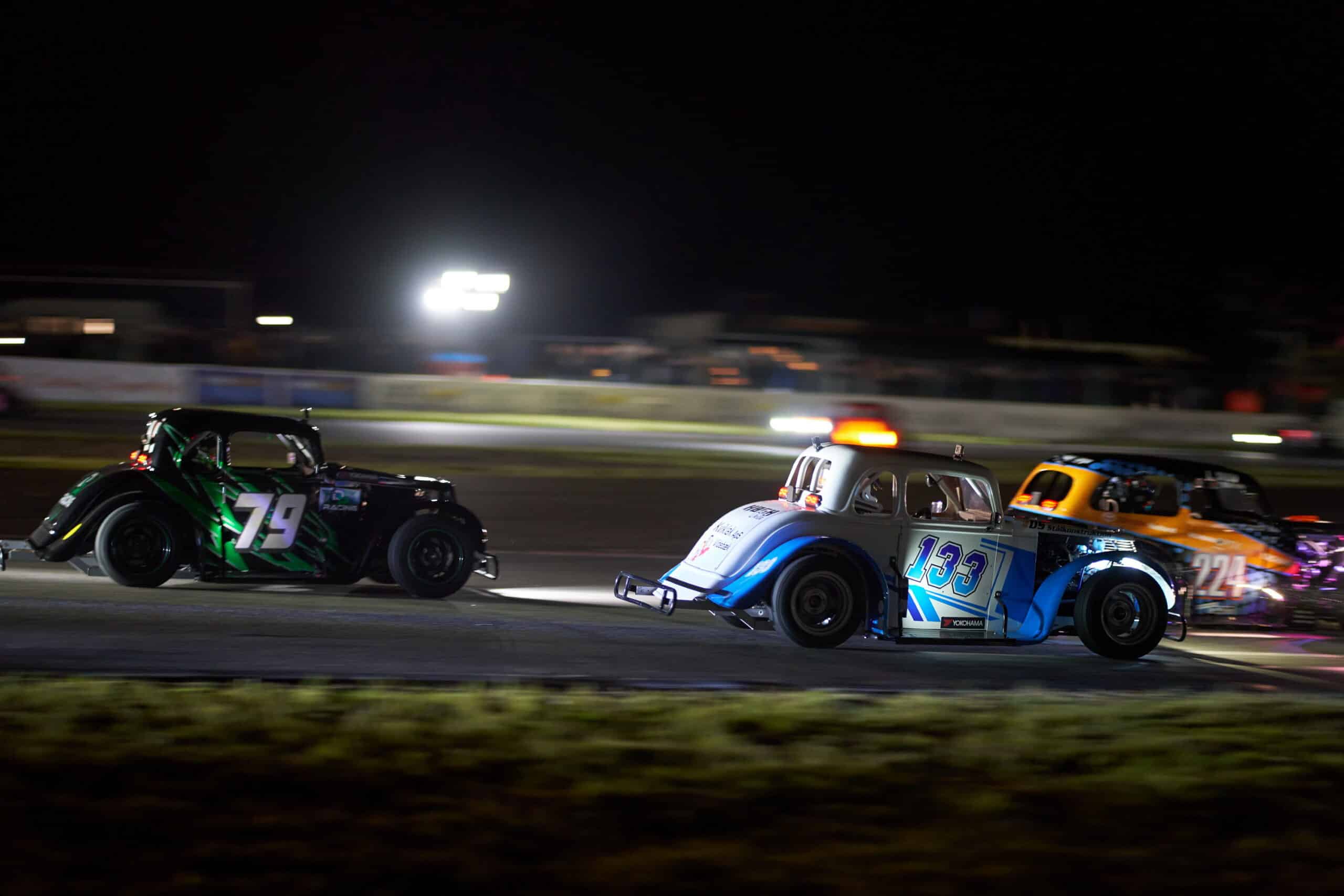 Det er en udfordring, når der skal races og overhales i mørket. Men festen er ikke slut, når finalevinderen har fået det ternede flag. Så plejer kørerne i klassen at levere et afterparty, hvor brændere og donuts i det specielle lys indhylder racerbanen i dækrøg.